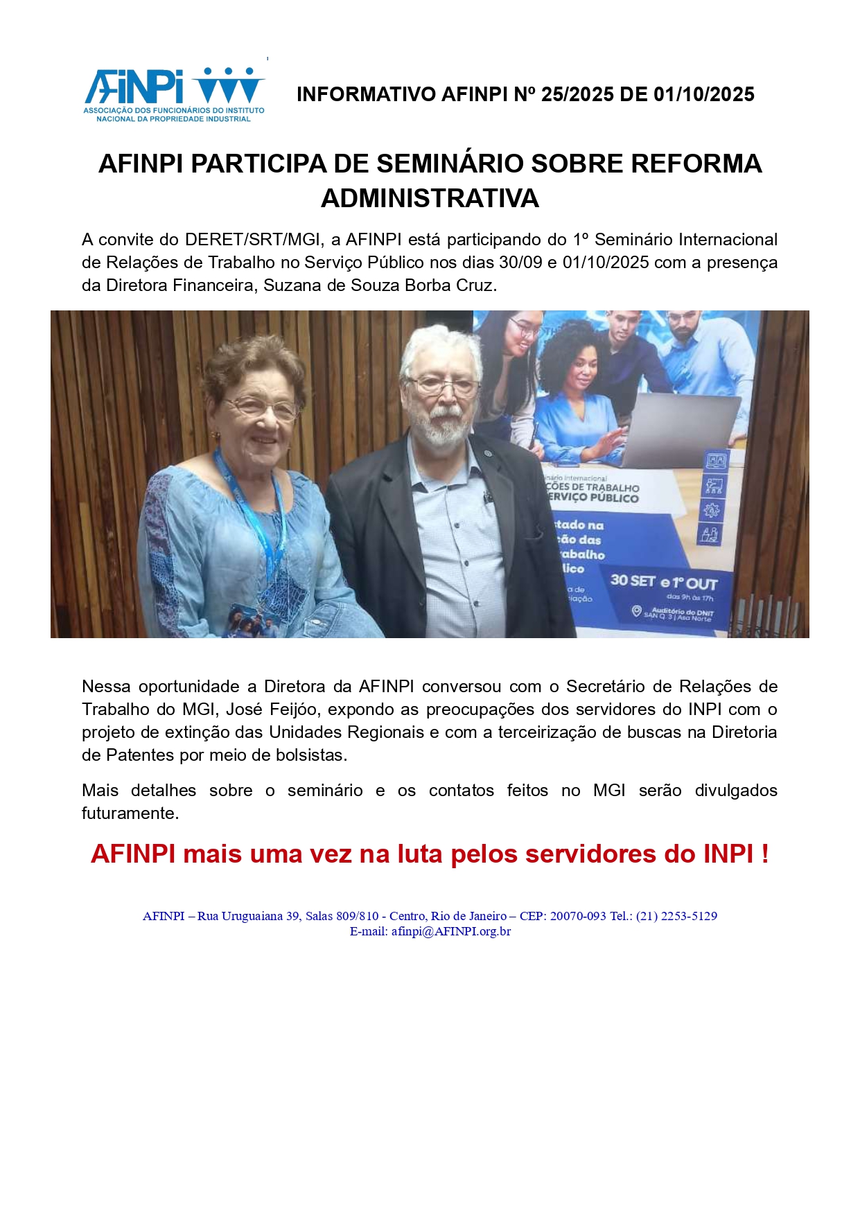 COMUNICADO AFINPI DE 30/09/2025 DIRETORIA DA AFINPI CRITICA CAMPANHA DIFAMATÓRIA