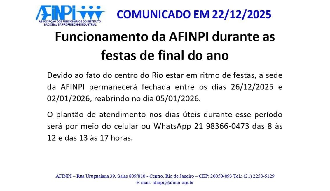 AFINPI CONTESTA CRÍTICAS DO PRESIDENTE DO INPI